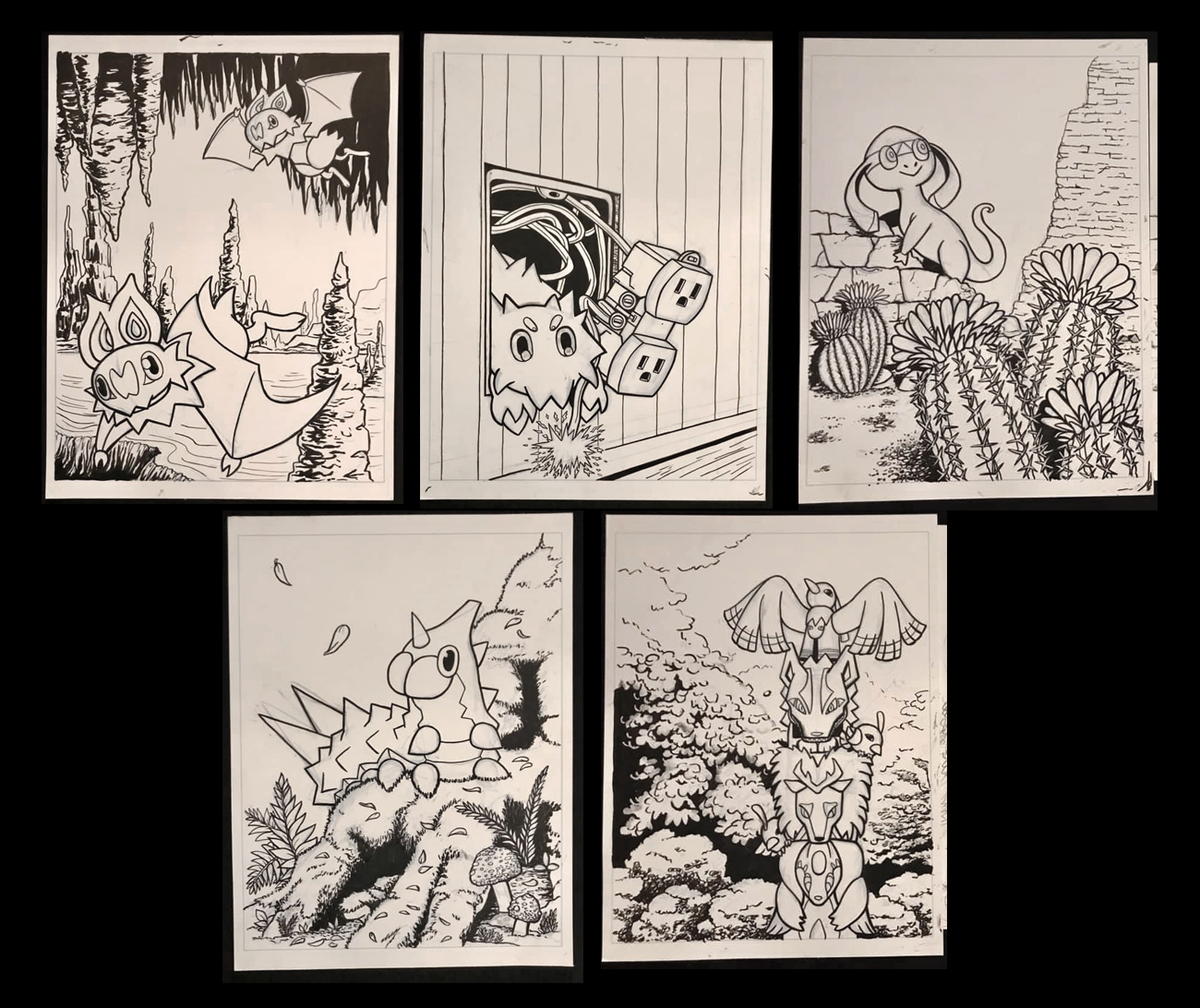 Original pages from my Pokemon in the Wild coloring books. All inked pages are 9"x12".