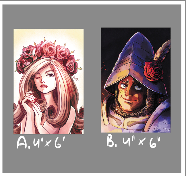 Two new small prints featuring Alexandria's finest knights. Both are printed on high quality 4"x6" matte photo paper to preserve color texture. They would look lovely displayed on a desk or wall where space is limited.